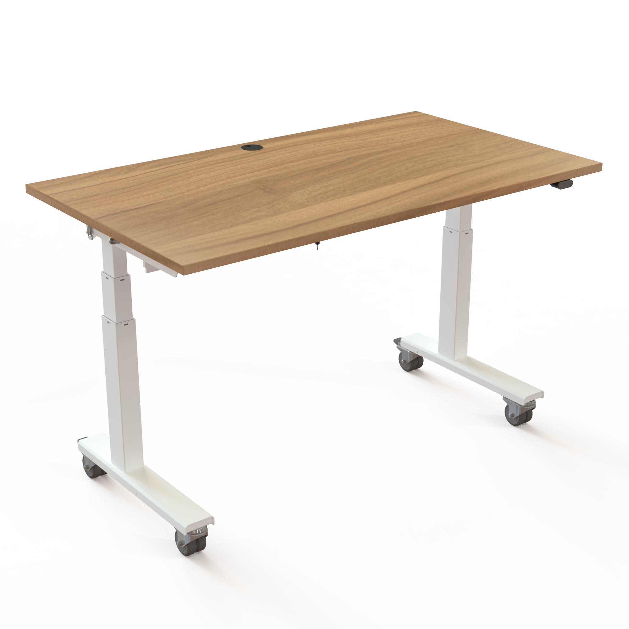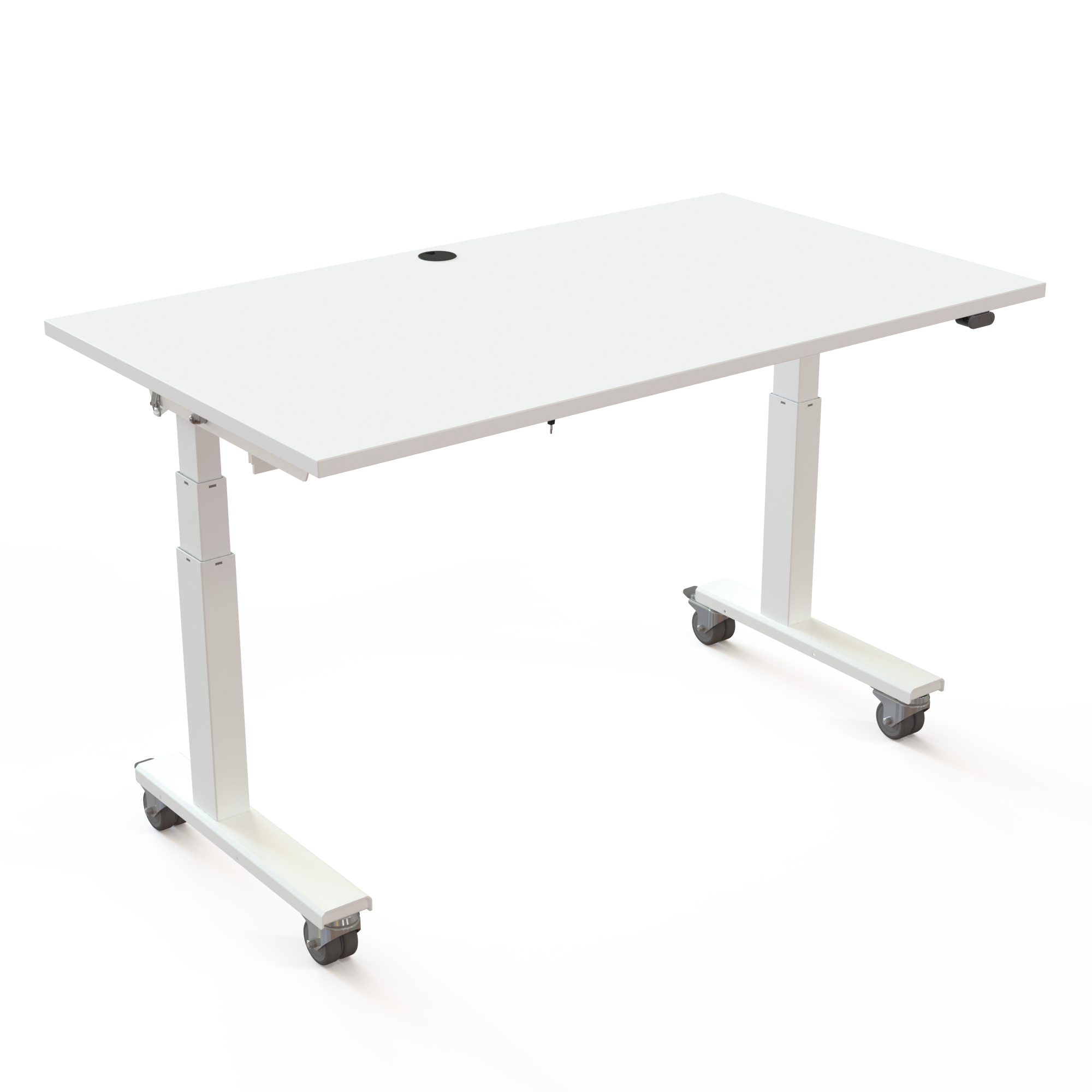 De tafel is vormgegeven met de focus op praktisch gebruik in een eenvoudig ontwerp met rechthoekige kolom en voet. Uw mobiele bureau wordt geleverd met sterke wielen, zodat u snel uw kantoorindeling kunt veranderen. Creëer een onafhankelijk werkstation met een optionele accu en de standaard gemonteerde kabelgoot.